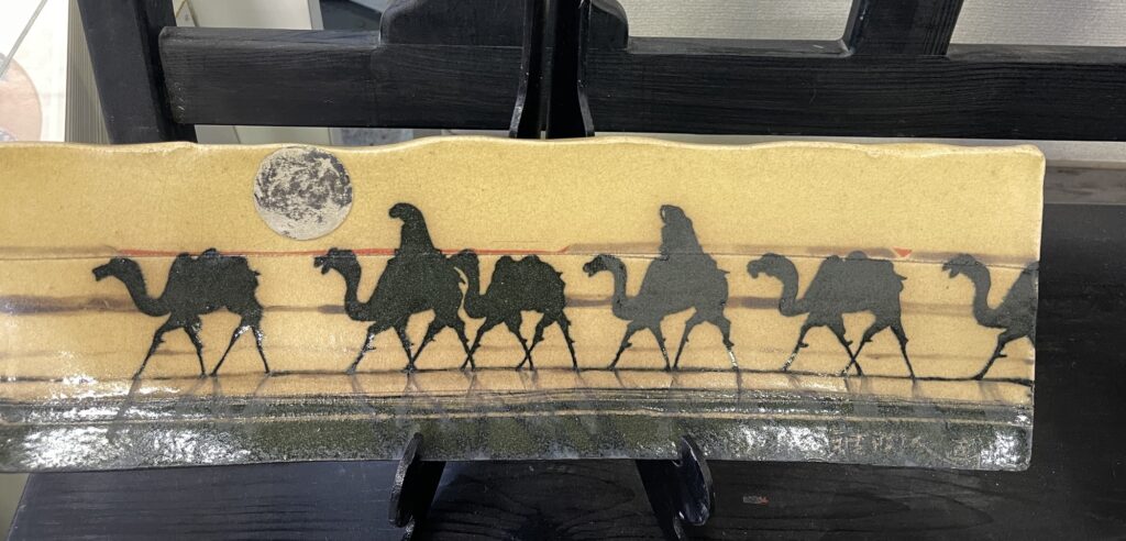 このシルクロード皿を一枚手に入れてから今回の企画が始まりました。サハラ砂漠を歩いた旅の思いも蘇ります。加藤舜陶と同世代に交流した民藝や柳宗悦•魯山人やさまざまな人の関わりが紐解いていくと